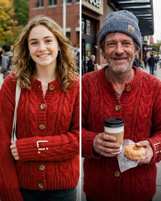 The man wearing the sweater looked like someone the world had chewed up and spat out. Unshaven, hollow-eyed, wrapped in layers that didn’t belong to him—except for that one piece of fabric that belonged entirely to her past.