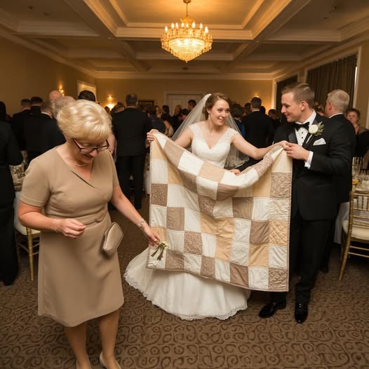 At the center of it all stood a frail old woman, her hands trembling slightly as she held up a handmade quilt. It wasn’t just fabric and thread. It was three weeks of aching fingers, late nights under dim light, and sixty years of memories carefully stitched into every square. Each pattern carried a story—some joyful, some painful, all deeply personal. But in that moment, it was reduced to a prop, dangling under bright lights as the crowd laughed louder, mistaking tenderness for comedy.