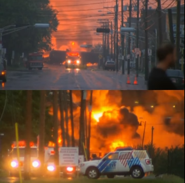 What happened: A freight train carrying crude oil ran out of control and derailed in the heart of a small town, triggering massive explosions that leveled blocks of buildings and sent towering fireballs into the sky. The blast ripped through homes, shops and streets — leaving scenes of devastation and a stunned, grieving community.