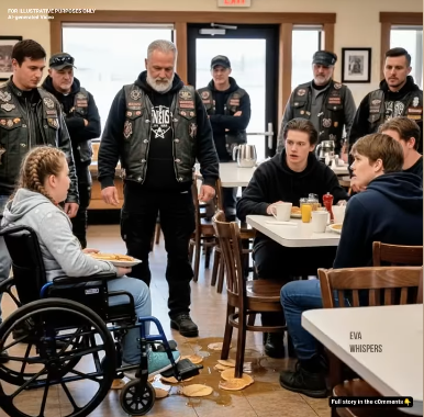 Maya parked her wheelchair beside a corner booth, hands steady, smile careful. Sixteen going on steel, she’d learned the choreography of stares—how to ignore the long ones and outlast the quick ones. She cut into a short stack, syrup slow as honey.