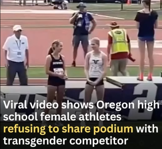 They said: “Watch this. Two female athletes in Oregon refused to stand on the podium because a boy was awarded a place. Girls have had enough.”