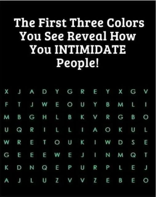 Whichever color your eyes land on first might reflect how you process information or what qualities you gravitate toward in yourself and others.This exercise works best when approached with curiosity rather than seriousness — simply pick the first color that captures your attention and enjoy the insight it offers.