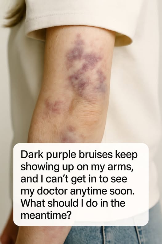 Dark purple bruises keep showing up on my arms, and I can’t get in to see my doctor anytime soon. What should I do in the meantime?