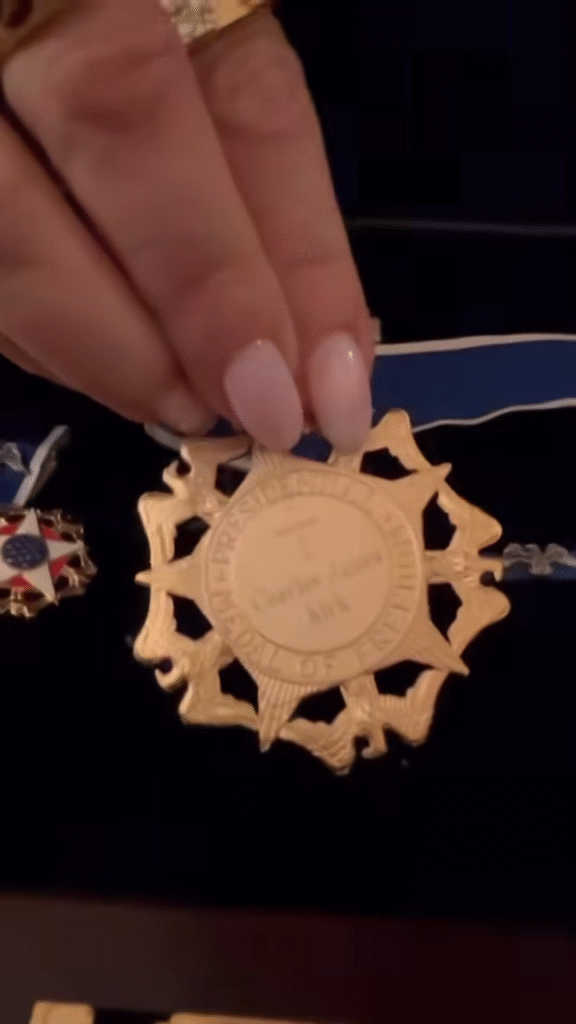 Commentators and influencers say this is the first time a Christian cross has been engraved on a Presidential Medal of Freedom. That detail is based on social posts and close-up footage—not an official government design memo released to the public.